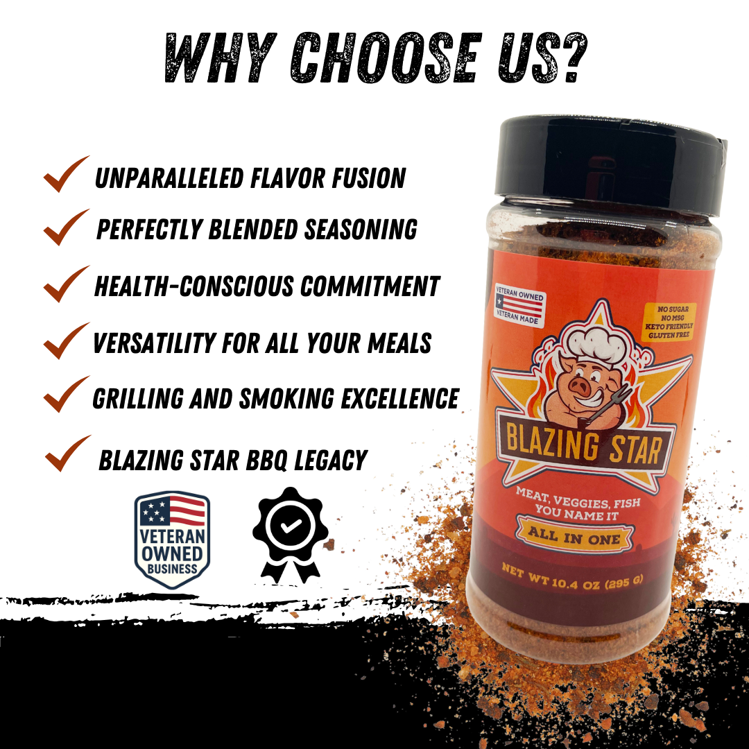 Introducing our All In One seasoning - the ultimate addition to your cooking arsenal! This versatile seasoning is perfect for adding flavor to meats, veggies, fish and so much more.