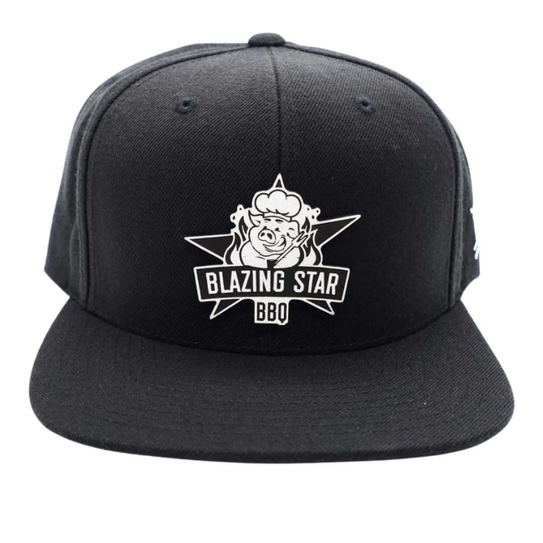 Blazing Star BBQ Black Flat Bill Snap Back Hat. If you like my sauces and rubs, why not rock the gear while you are out cooking.